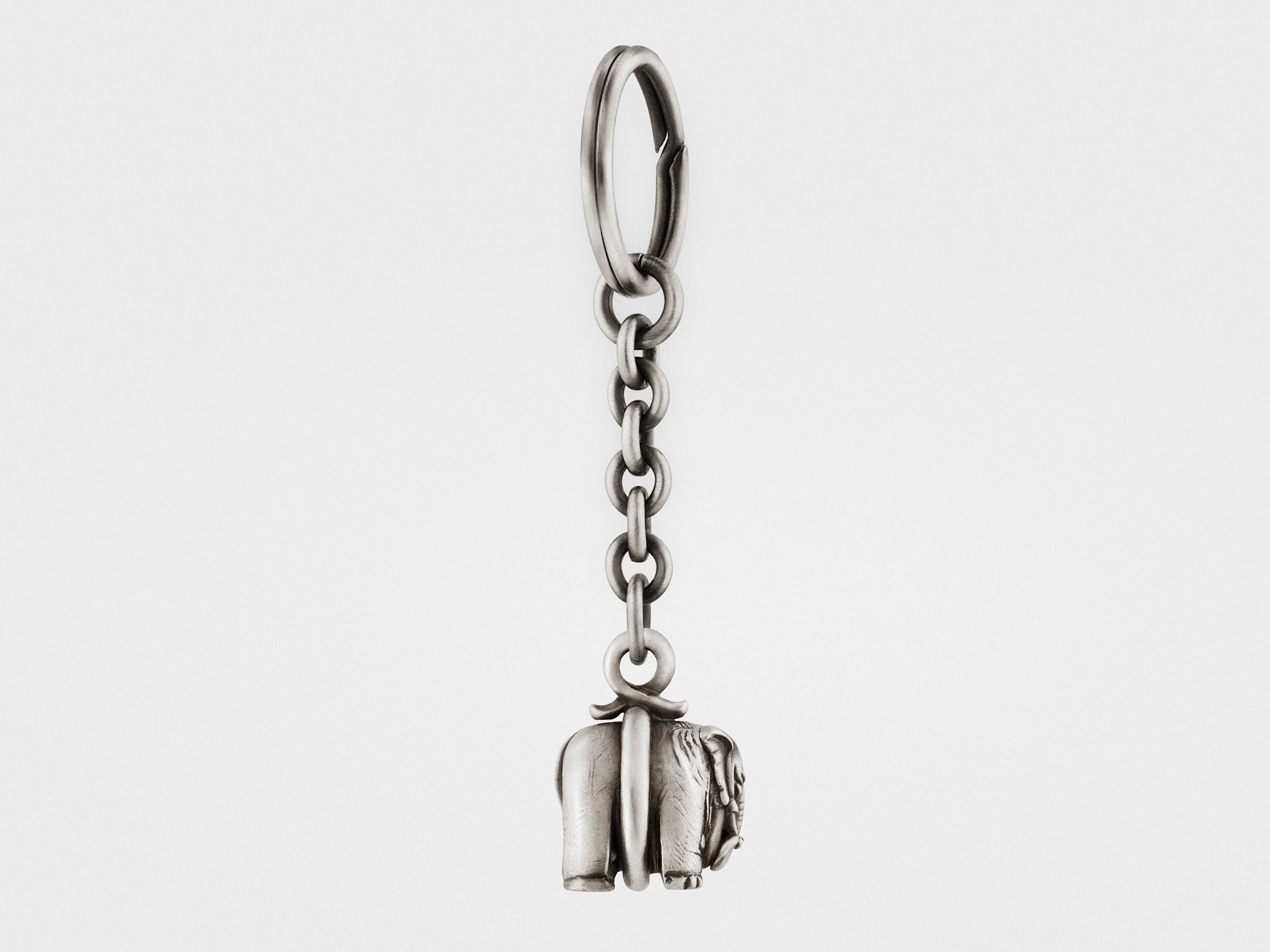 Elephant keychain finished by hand in oxidized sterling silver for a vintage, artisanal look.