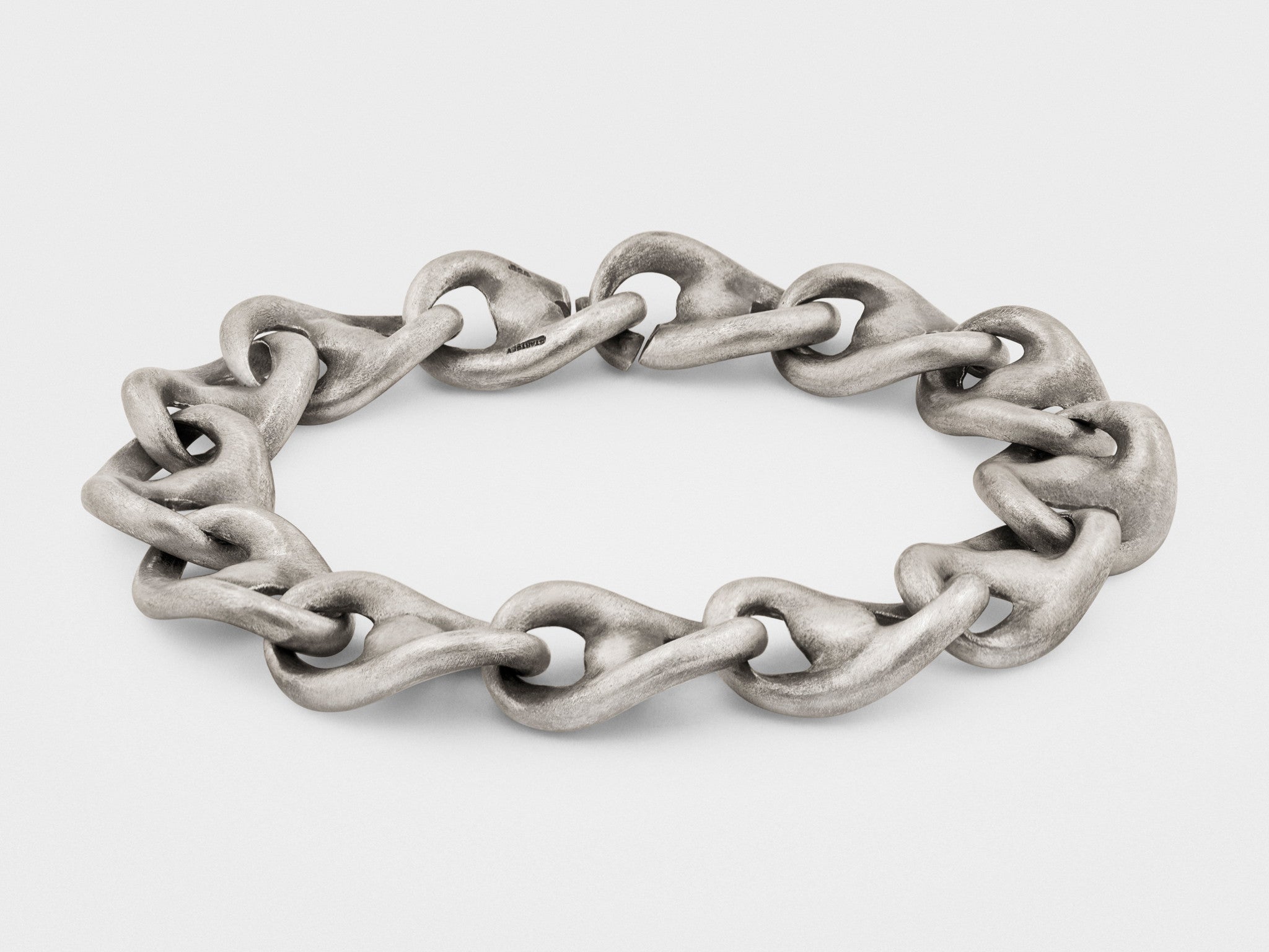 This beautifully sculpted chain bracelet is handcrafted out of large wave links to form a perfect chain that locks with a "seamless" clasp.